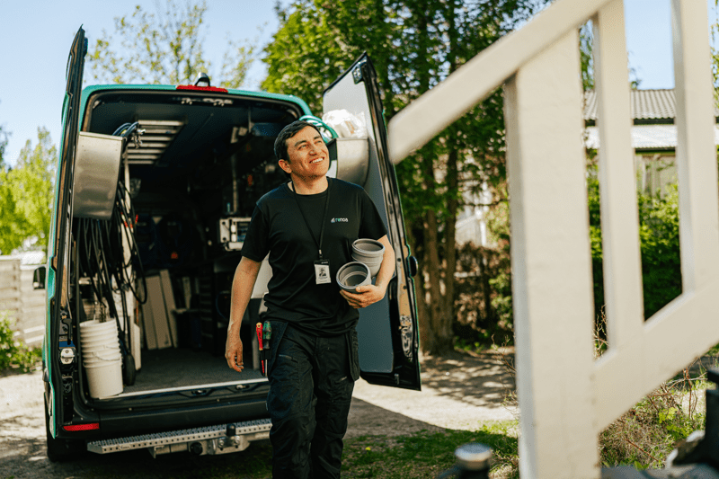 Bara under 2025 kommer vi att förnya omkring 800 villors avloppssystem. Våra kunder ger oss toppbetyg, med ett genomsnitt på 4,4 av 5 i nöjdhet. Hemligheten bakom framgången? Vi satsar helhjärtat på våra medarbetare.